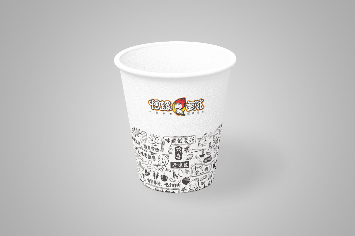 芥末从品牌命名提出三大方向,十余款方案中多次筛选比对,通过注册查询最终选择“啊螺多滋”做为品牌名称和“一碗鲜香 螺味悠长”的口号。配合这一形象,设计出标志字体,卡通形象和一系列的店内VI设计,获得一致好评,开业当天就有人上门咨询加盟事宜。